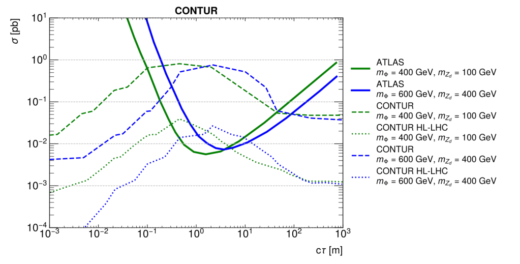 The second result was the outcome of a masters internship which I supervised last year. The student, Simon Jeannot, also used the CONTUR method, but managed to apply it to LLP models for the very first time (see our publication), deriving new constraints on relevant models, some of which we had only just started to explore in ATLAS (such as in this dedicated search of mine). It was one of those wonderful moments when an innovative new result comes unexpectedly. Indeed, the original idea of the internship for Simon was to apply CONTUR to a non-LLP new-physics models, a bit like Clarisse had done. But in over the course of the project, we figured out how we could apply it to a model with an unusual signature of a long lifetime (where CONTUR normally can’t reach), leading to a whole array of new results. That paper was published in JHEP with Simon as a co-author, and I was proud that his first trip to CERN was not as a tourist but as a researcher presenting his work to the wider community.